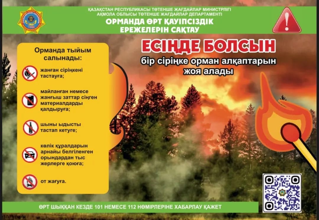 Есіңізде болсын: өрт қауіпсіздігі ережелерін бұзғаны үшін әкімшілік және қылмыстық жауапкершілік қарастырылған.